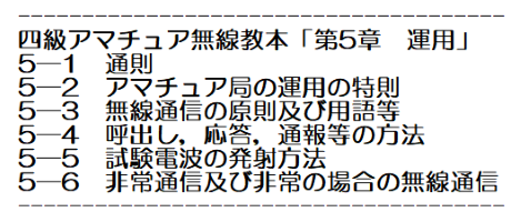 今回のJG1JBM 長田OMプレゼンは、実際の運用でも身近な事として、四級アマチュア無線教本より 第5章「運用」をとりあげました